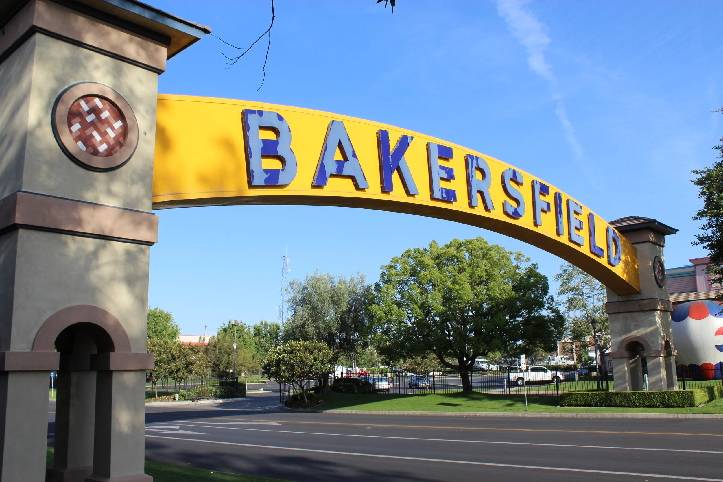 This sign at Buck Owens’ Crystal Palace, north Bakersfield, incorporates the original letters and design from the Bakersfield Inn Motel sign that once spanned old Highway 99 near the southern end of the city. The original sign was actually a bridge from one section of the motel to the other, across the highway. Country music star Owens salvaged the letters and recreated the sign on his property.